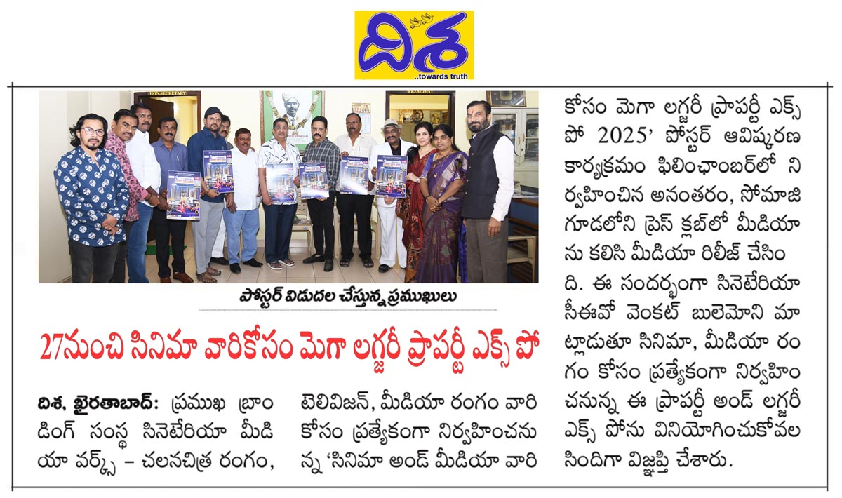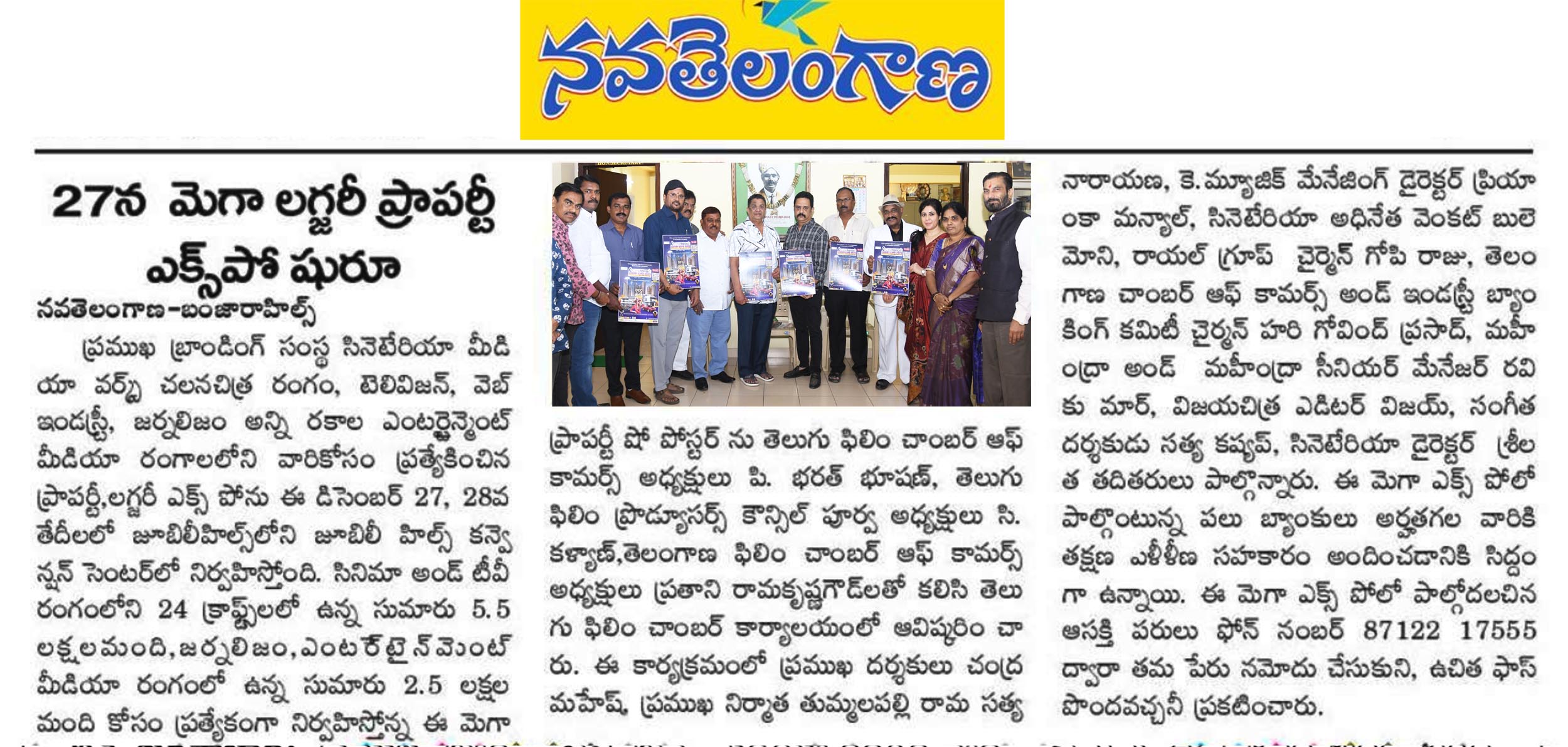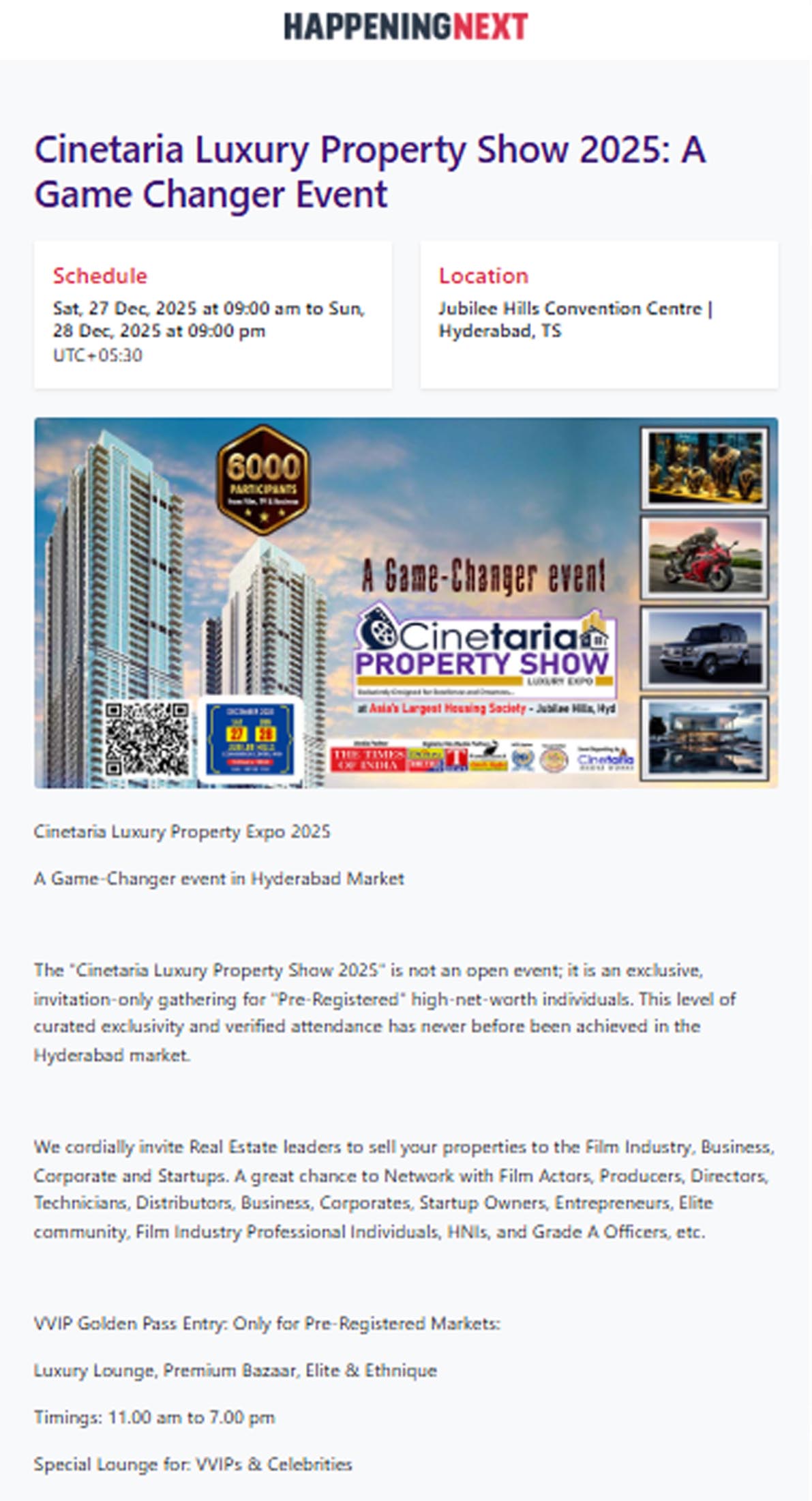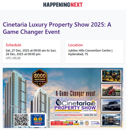 Cinetaria Media Works, is organising "Luxury Property Expo 2025" from Dec 27, 2025 to Dec 28, 2025 at JHCC, Hyd